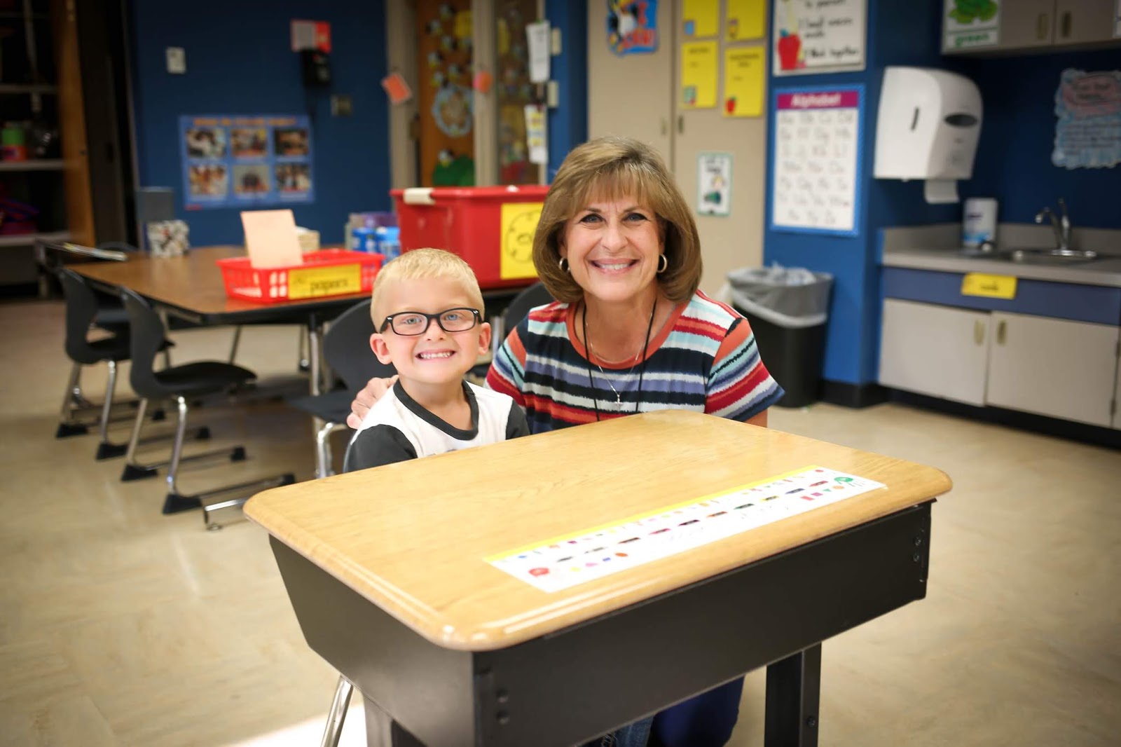 Jordyn's teacher is Mrs. Schmidt which came as a surprise to me since we know her outside of school. Jordyn's grandma babysits Mrs. Schmidt's son every day. That being said, we are so, so excited to have her! She is very kind and loving and dedicated to her students which is Jordyn's favorite kind of teacher! :)
